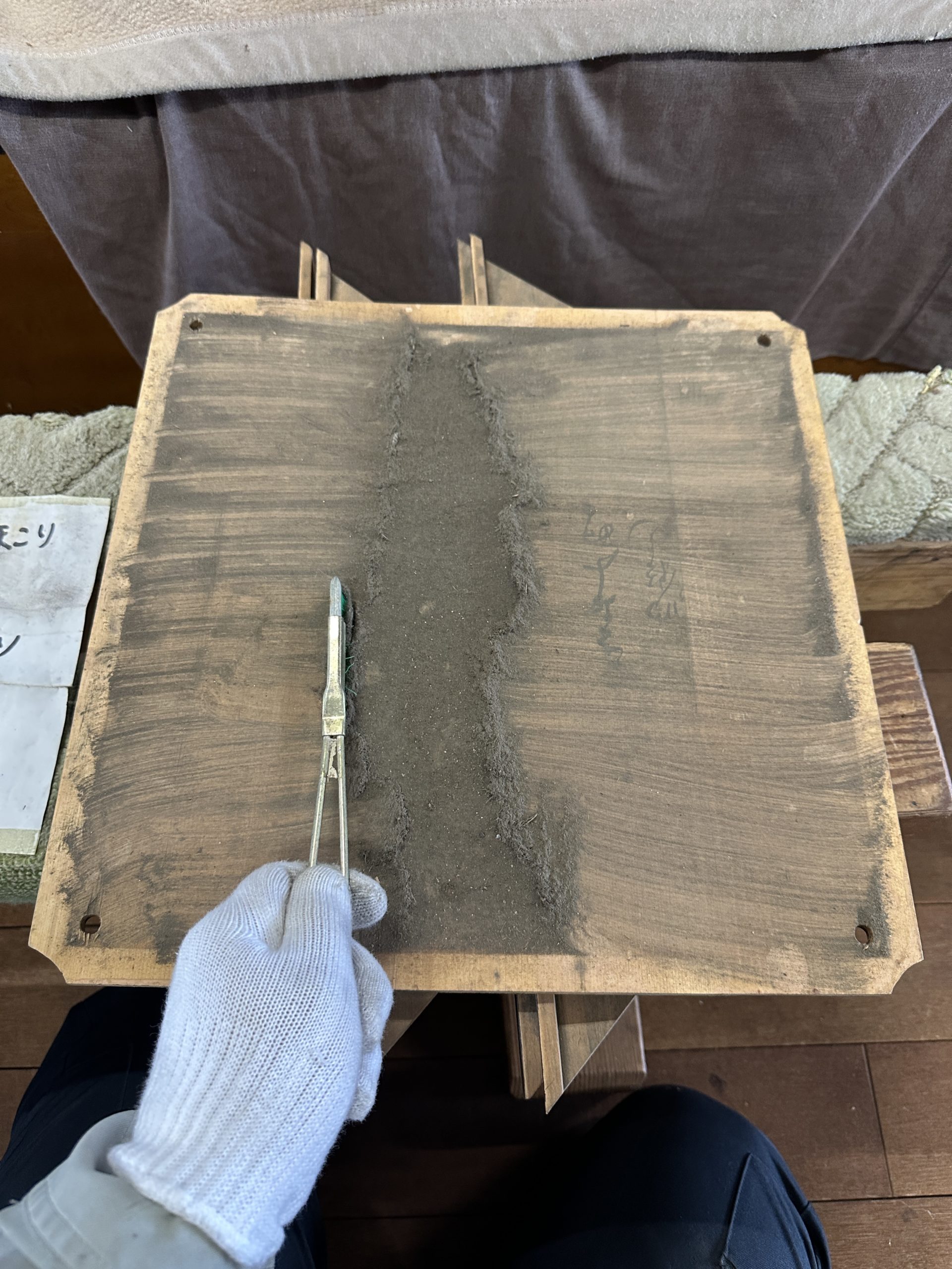 実際には1枚ずつ、洗浄と天然素材による保護処置を行いました