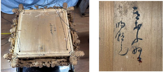 確かにこの文字の裏側には、まるで最近塗り直したのではないかと思われるくらい鮮やかな黄色の塗りがしてあります。ですがこのメモ書きによって鮮やかな黄色が建立当初のものである可能性も十分考えられると思います。