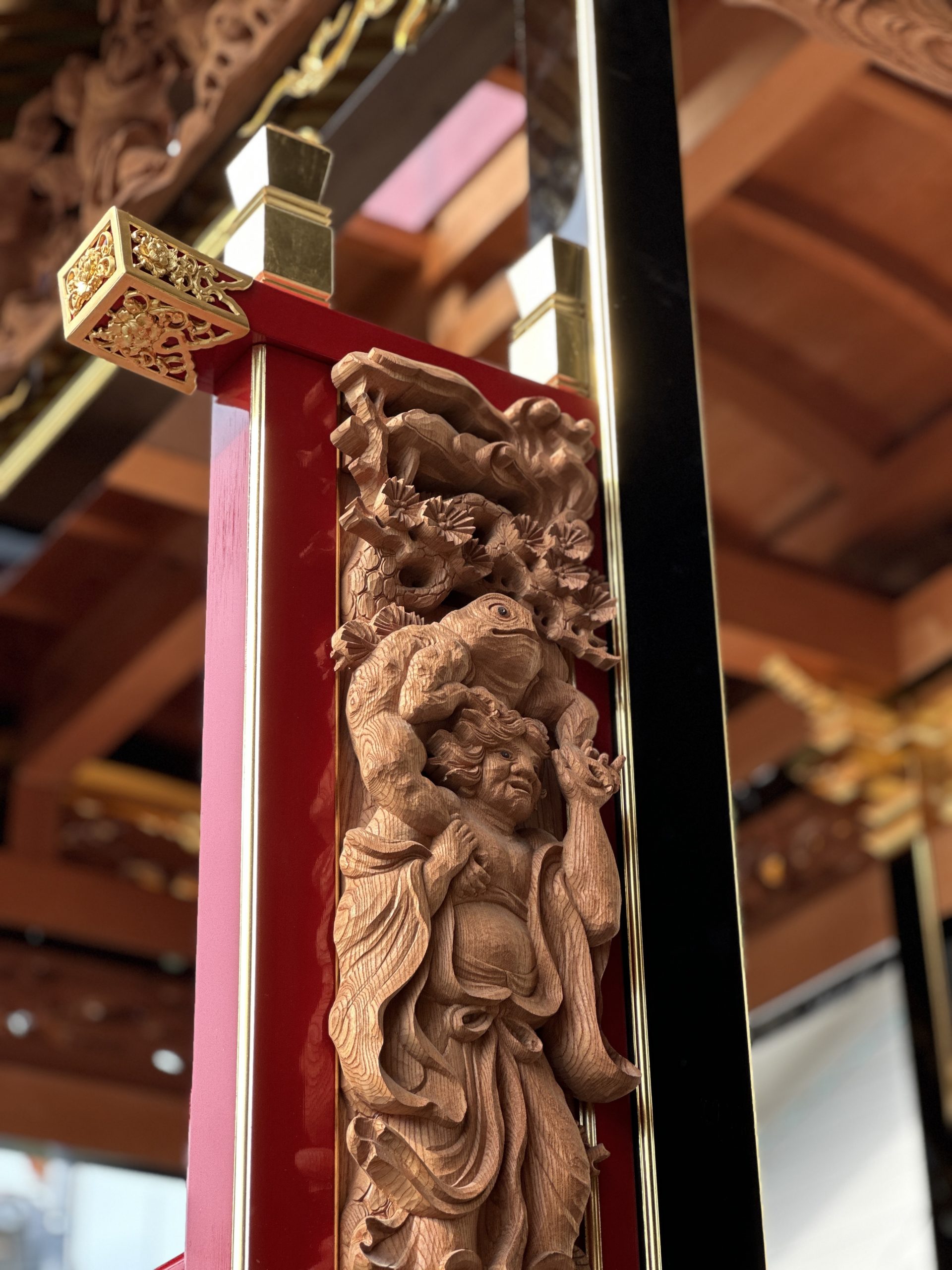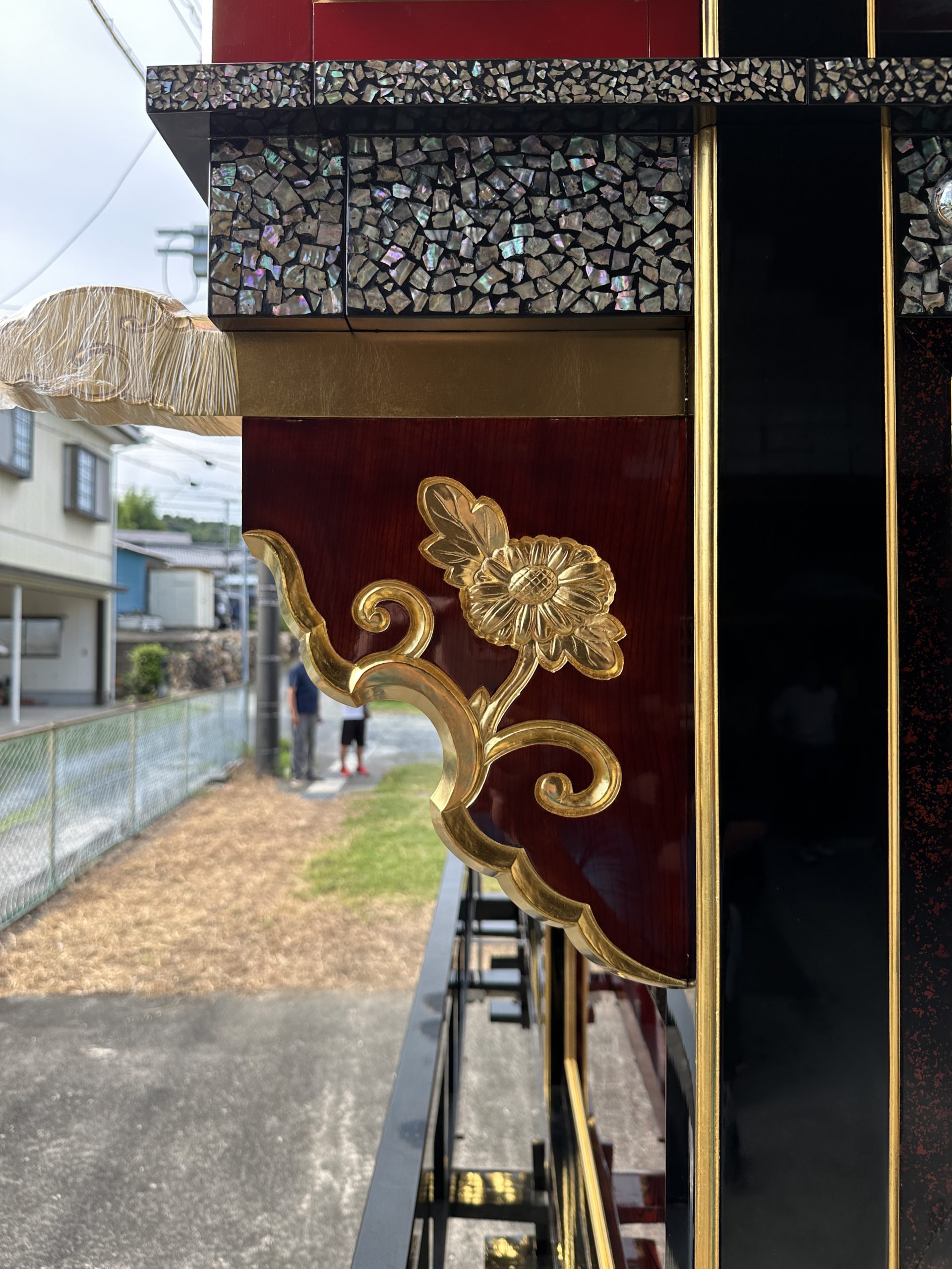 ただし、これらは神事です。神さまの乗り物である「御神輿」は漆塗りが正式とされています。おなじように山車も神事であり、さらに山車を作った人、ご先祖さまのものでもあったわけです。お祭りを継承するためには「祭り文化」と「正しい技法」両方が伝わることで益々発展していくものだと私たちは思いたいです。